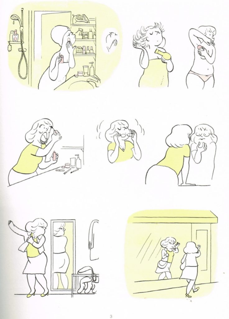 La bd Idéal standard d’Aude Picault, parue en 2017 chez Dargaud, retrace la vie quotidienne d’une jeune femme en quête de la relation idéale. Est-ce que les images de vies parfaites et formatées par les médias que notre société de consommation nous présente comme désirables sont vraiment synonymes de bonheur et de liberté pour les femmes ? Cherchant à répondre à ces questionnements, Aude Picault nous propose de suivre trois années de la vie de Claire dans son quotidien rythmé par sa quête du couple idéal dans un récit intimiste et drôle.